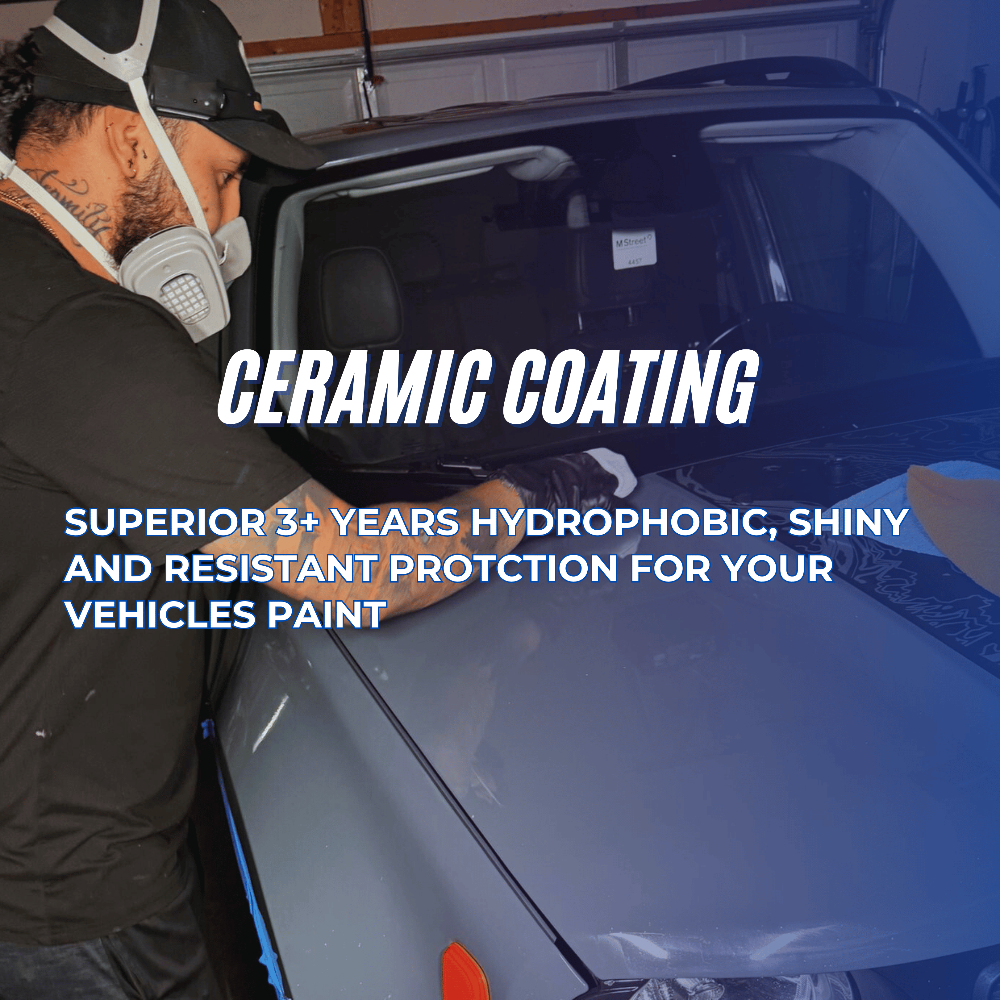 Ceramic Coating offers unmatched durability, resisting swirls, scratches, UV rays, and dirt while delivering a stunning shine. With its heat resistance and hydrophobic properties, it keeps your car cleaner, longer—no constant waxing needed.